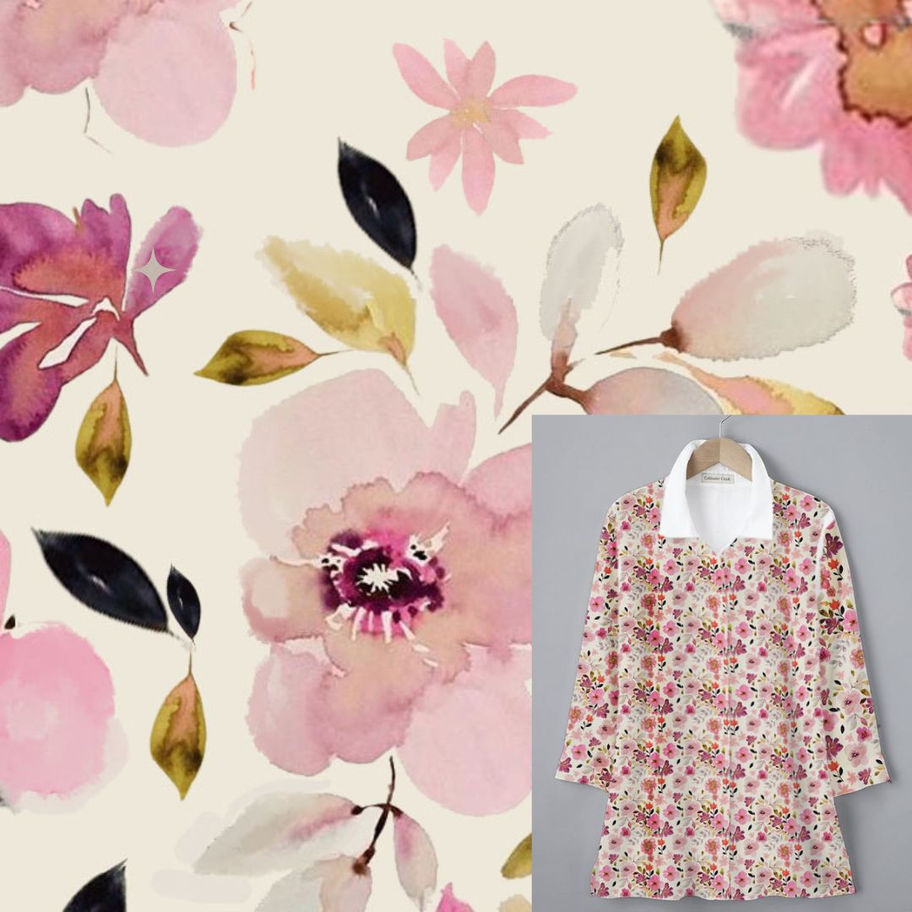 Design incorporates colours: beige,black and pastel shades of pink,peach,light green.